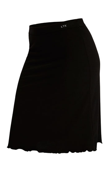 Sukně má pružný pásek bez gumy. Střih mírně rozšířené sukně je s ozdobným obšitím v délce sukně.