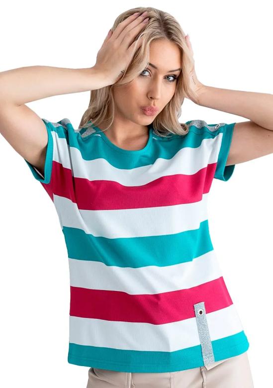 Dámská halenka 1104/17 značky HAJDAN představuje dokonalou volbu pro ženy, které hledají pohodlí a styl v jednom. Její výrazný pruhovaný vzor v kombinaci s jemnými barvami vytváří svěží vzhled, který zaujme na první pohled. Díky krátkým rukávům a kulatému výstřihu si užijete maximální volnost pohybu i během teplejších dnů. Materiálová směs s vysokým podílem viskózy je nejen příjemná na dotek, ale také zajišťuje lehkost a vzdušnost při nošení.