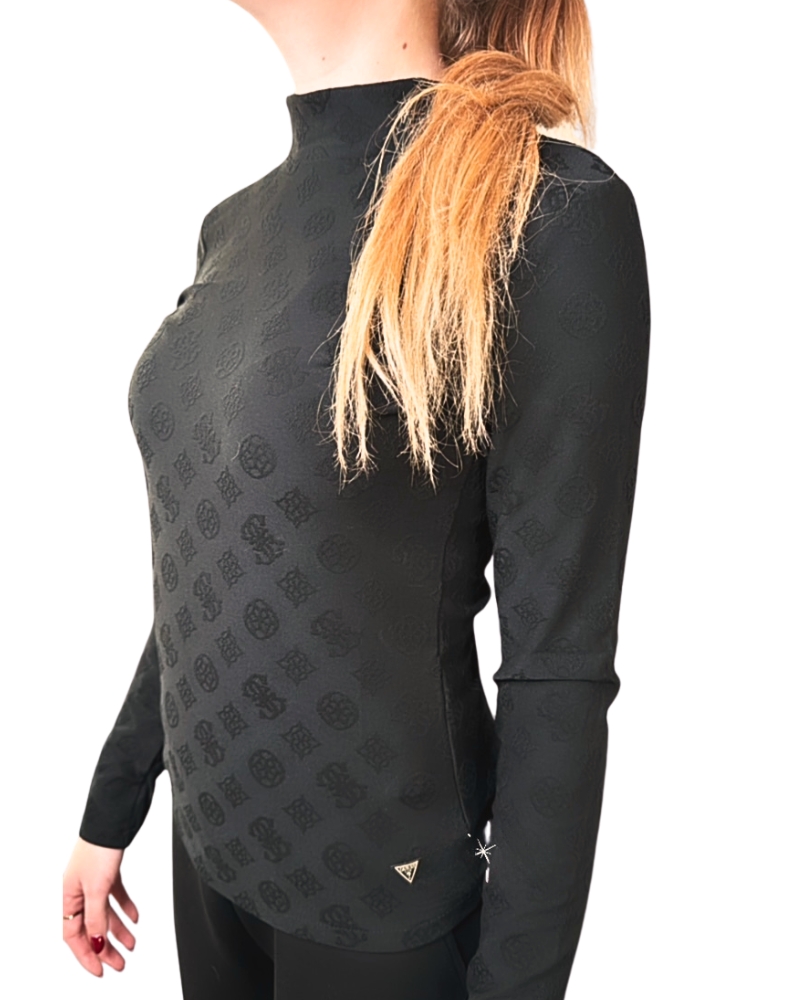 Triko v černé barvě s celopotiskem žakárového vzoru Guess.