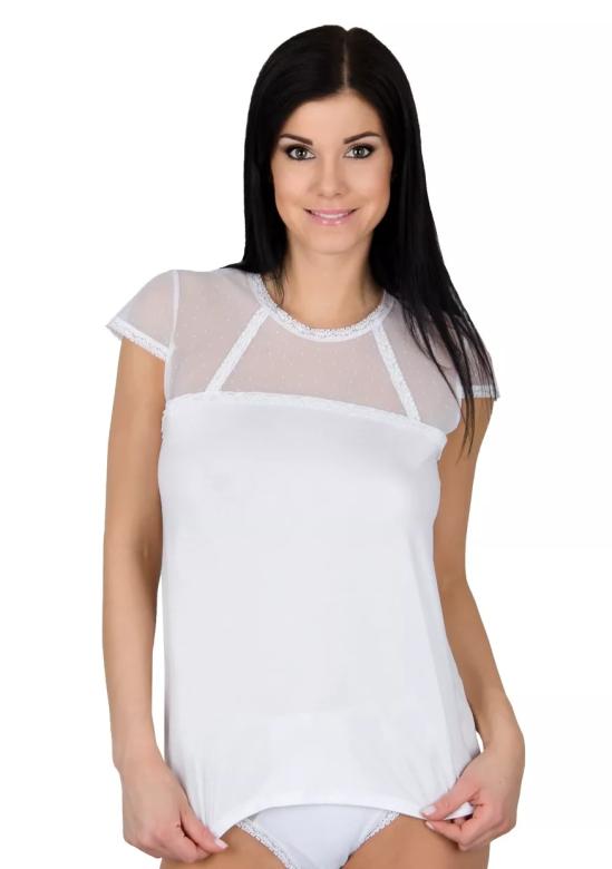 Dámská halenka H3/2-4 FABIO představuje elegantní a pohodlný kousek do vašeho šatníku. Halenka je vyrobena z kvalitního modalového úpletu, který je známý svou jemností a prodyšností, čímž zajistí vysoký komfort při nošení po celý den.Přední část halenky zdobí jemná krajka s decentním vzorem puntíků, která dodává modelu sofistikovaný a ženský vzhled. Krátké rukávy a kulatý výstřih podtrhují univerzálnost tohoto modelu, který snadno zkombinujete s různými styly oblečení.Složení materiálu je pečlivě vybráno…