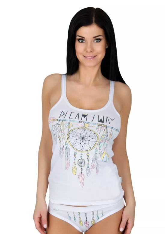 Dámská košilka 52/1-30/D206 FABIO je lehký kousek, který vyniká svým jemným designem lapače snů a nápisem Dream Away. Ideální volba pro horké letní dny nebo jako pohodlná vrstva na doma. Typ: úzká ramínka s pevnou konstrukcí zajišťují pohodlí a stabilitu během nošení. Styl: moderní vzor bez krajky zdůrazňuje jednoduchost a eleganci. Materiál: kvalitní bavlna doplněná o 6 % lycry pro větší pružnost a komfort. Složení: 94 % bavlna, 6 % lycra. Tato košilka se tak přizpůsobí tvaru těla a poskytuje pocit s…