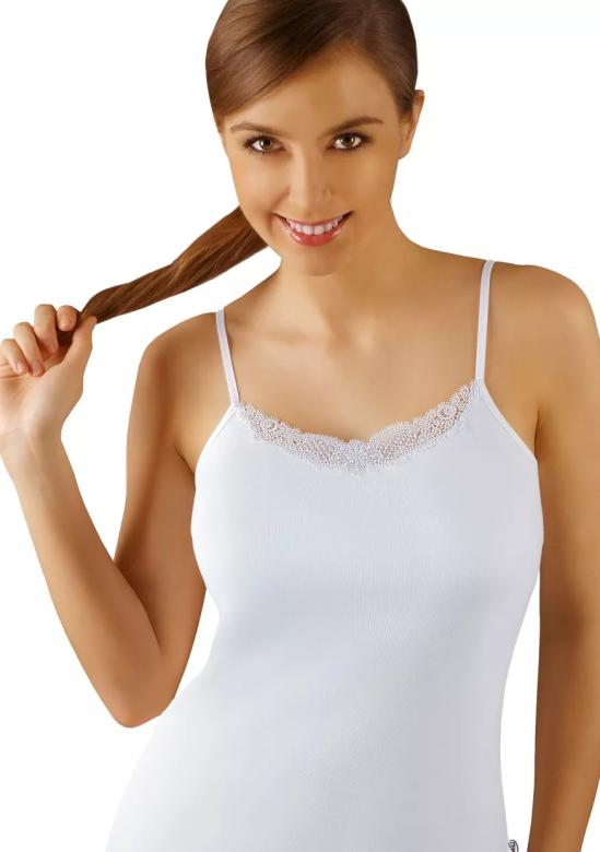 Dámská košilka Sila EMILI je ideální volbou pro každodenní nošení díky svému jemnému designu a maximálnímu pohodlí. Spodní košilka s úzkými ramínky je zdobená elegantní krajkou na výstřihu, která dodává výrobku ženský a něžný vzhled. Ušitá je z prvotřídní měkké bavlny, která přináší příjemný pocit na pokožce a zajišťuje pohodlné nošení po celý den. Typ: Úzká ramínkaStyl: Jednoduchý design bez vzoru se zdobením krajkouVlastnosti: Pevná ramínka pro lepší drženíMateriál: Vysoce kvalitní bavlnaSložení: 100% …
