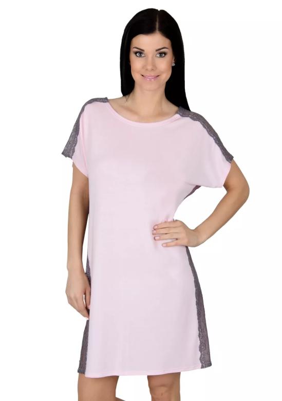 Dámská noční košile 62/2-15 FABIO z příjemného modalu nabízí kombinaci pohodlí a elegance. Modalová látka je jemná na dotek a zajišťuje skvělou prodyšnost i během horkých nocí. Krátký rukáv zdobí široká barevná krajka, která dodává modelu stylový nádech a decentní ženskost. Tato noční košile se díky svému volnému střihu hodí nejen na spaní, ale i k relaxaci doma jako volné triko.