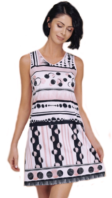 Dámská noční košile má výstřih do „V“ a široké ramínka. Přední stranu zdobí originální potisk.