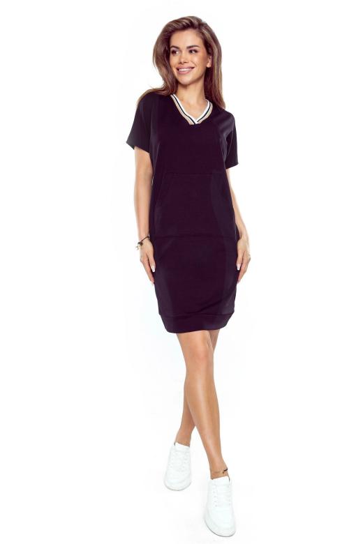 Výstřih je s barevným stahujícím lemem, košile má krátké rukávy a kapsy na bocích.