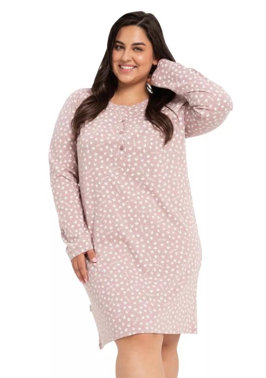 Dámská noční košile Gabrielle 3007/31 TARO je ideální volbou pro pohodlný spánek i relaxaci. Tento model v nadměrné velikosti je vybaven dlouhými rukávy a decentním vzorem s motivem kávových šálků, který přidává košili jemný a elegantní vzhled.