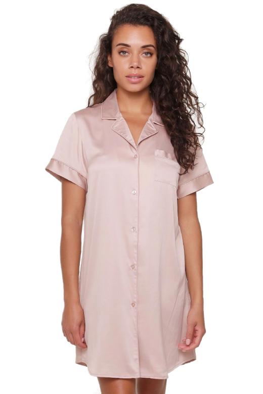 Noční košile je vyrobená z velmi hladkého saténu, košile má krátké rukávy.