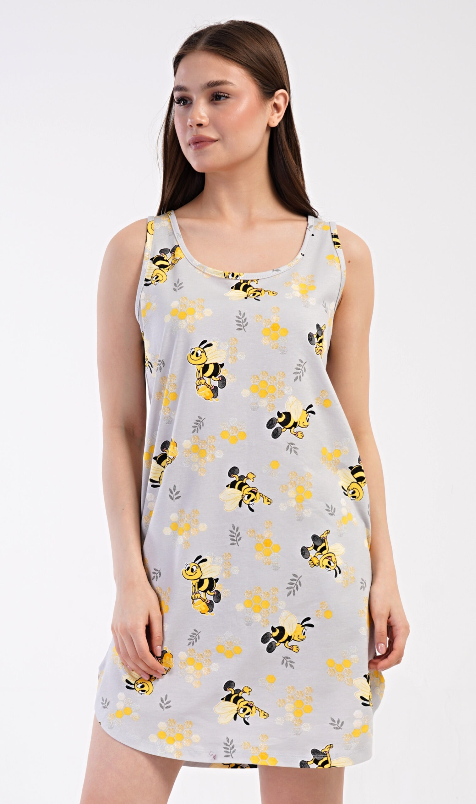 Noční košile se širšími ramínky a kulatým výstřihem má praktické kapsy, je potištěna obrázky včelek.