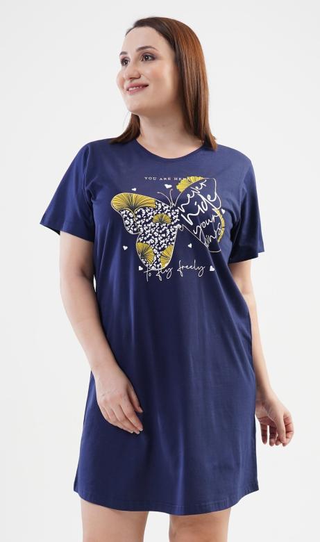 elegantní a kvalitní dámská noční košile s krátkým rukávem s motivem motýla vpředu.