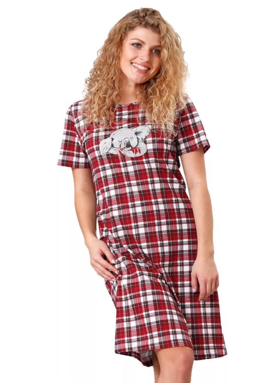 Dámská noční košile Odet 1166 LEVEZA je praktickým a stylovým kouskem pro každodenní pohodlí. Tato kostkovaná košile nabízí krátký rukáv a kulatý výstřih, který zajišťuje volnost pohybu a příjemný pocit při nošení.