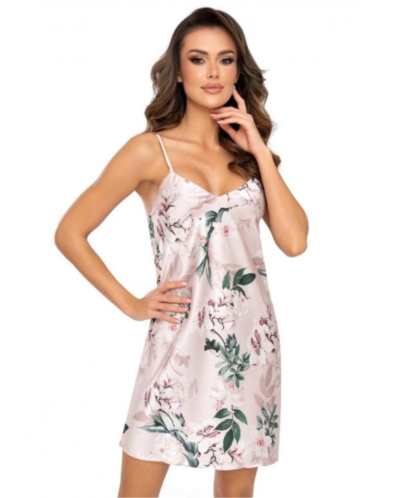 Košile je vyrobená z velmi kvalitního saténu, zdobená potiskem s květinovým motivem.
