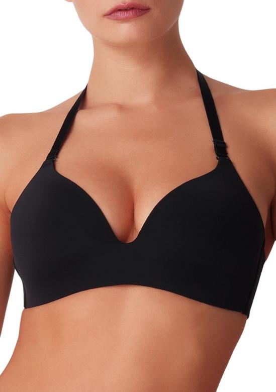 Dámská podprsenka italské značky Cotonella. Tento nový model podprsenky je bez kostic, navržený pro maximální pohodlí a diskrétnost pod oblečení. Podprsenka má měkké vycpávky pro přirozený tvar a vysokou podporu poprsí. Spodní část podprsenky tvoří plochý lem bez elastických švů, což zajišťuje neviditelnost pod oblečením. Podprsenka má na bocích všité boční kostice, proti krčení obvodové části. Ramínka jsou délkově nastavitelná a odnímatelná, tím umožňuje různé styly nošení (klasické, křížené nebo bez ra…