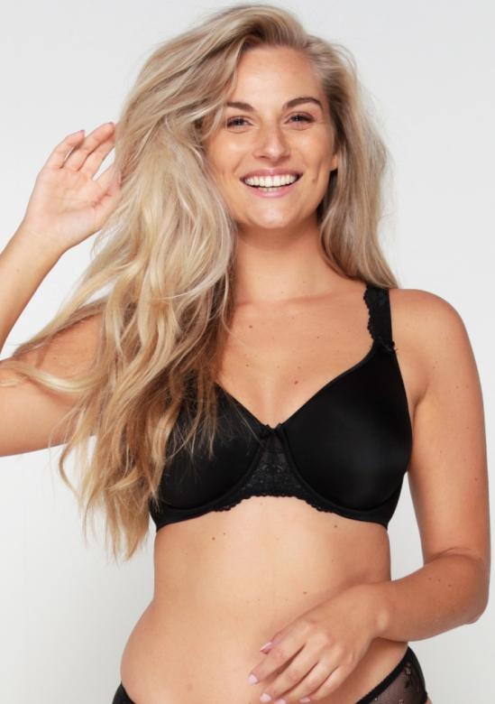 Podprsenka má vyšší střed a širší ramínka pro pohodlné nošení i pro ženy s větším poprsím.