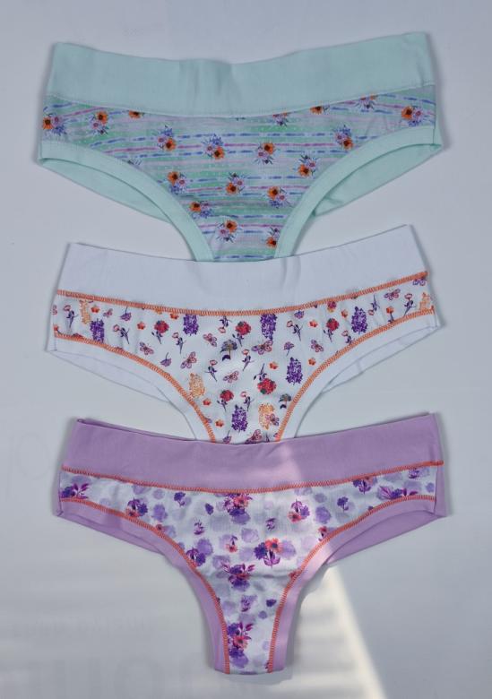 Dámské bavlněné brazilky od značky Lovelygirl. Brazilky jsou příjemné na dotek, hladké, vpředu s potiskem. Po obvodu je pohodlný širší pružný pás a do vnitřního dílu je všitý malý klínek pro komfortní nošení.