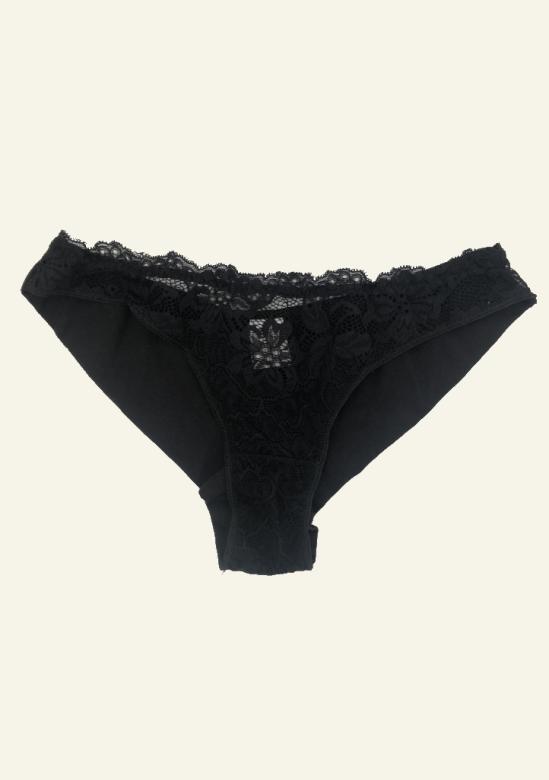 Brazilky jsou kombinací hladké látky a krásné vzorované krajky v přední části. Zadní část je prostřižena, aby dokonale padla na zadeček a je bezešvá. Uvnitř je vsazen bavlněný klínek pro pohodlné nošení.