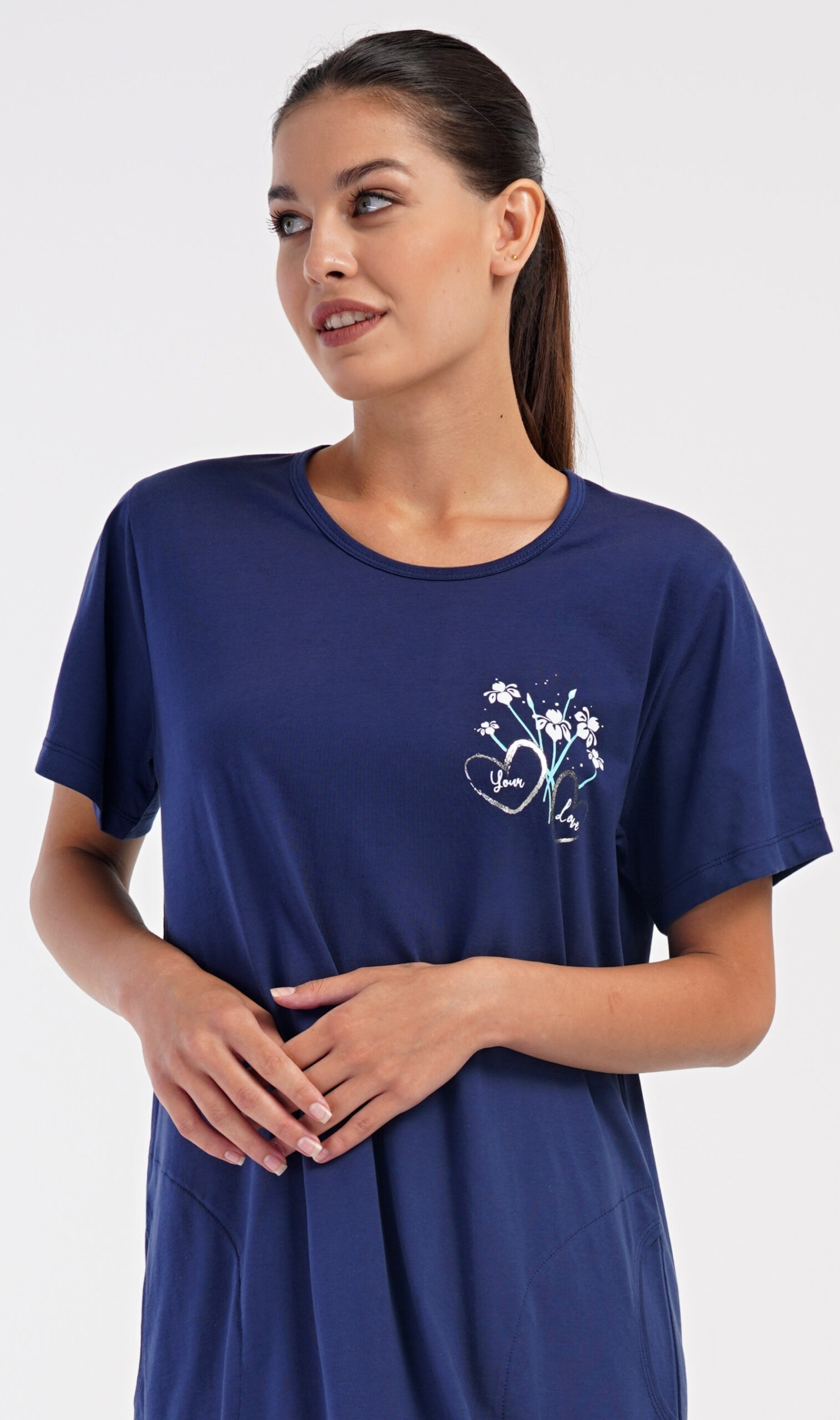Pohodlné modré dámské domácí šaty s krátkým rukávem Janette.