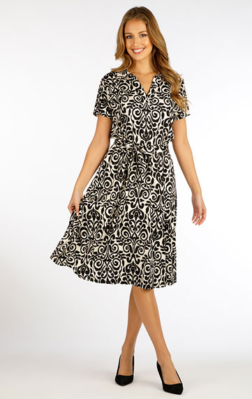 Šaty jsou v pase přestřižené s páskem na zavázání.