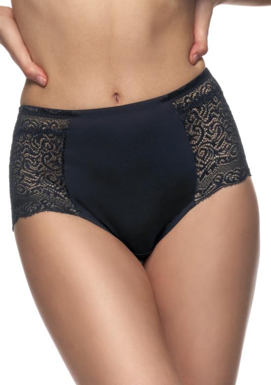 Kalhotky mají vyšší pas a krásně vytvarují postavu pod oblečením. Mají mírně stahovací efekt. Přední a zadní část kalhotek je ušitá z hladké látky – mikrovlákna. Nohavičky kalhotek na bocích lemuje pružná ozdobná krajka.