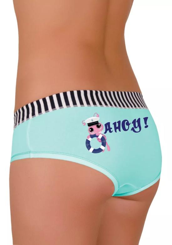 Francouzské kalhotky s originálním námořnickým potiskem a nápisem „AHOY!“ jsou ideální volbou pro každodenní nošení.