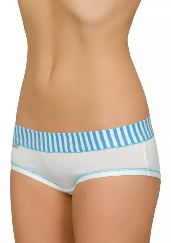 Kalhotky jsou bez krajky a zdobeny decentním vzorem, což zaručuje stylový, a přitom nenápadný design. Vnitřní část je z bílého bavlněného materiálu, který zajišťuje prodyšnost a příjemný pocit na pokožce.