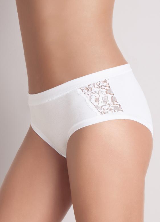 Pohodlné bavlněné kalhotky středně vysoké v kombinaci s krajkou po bocích. Kalhotky mají v pase přjemný nestahující lem.
