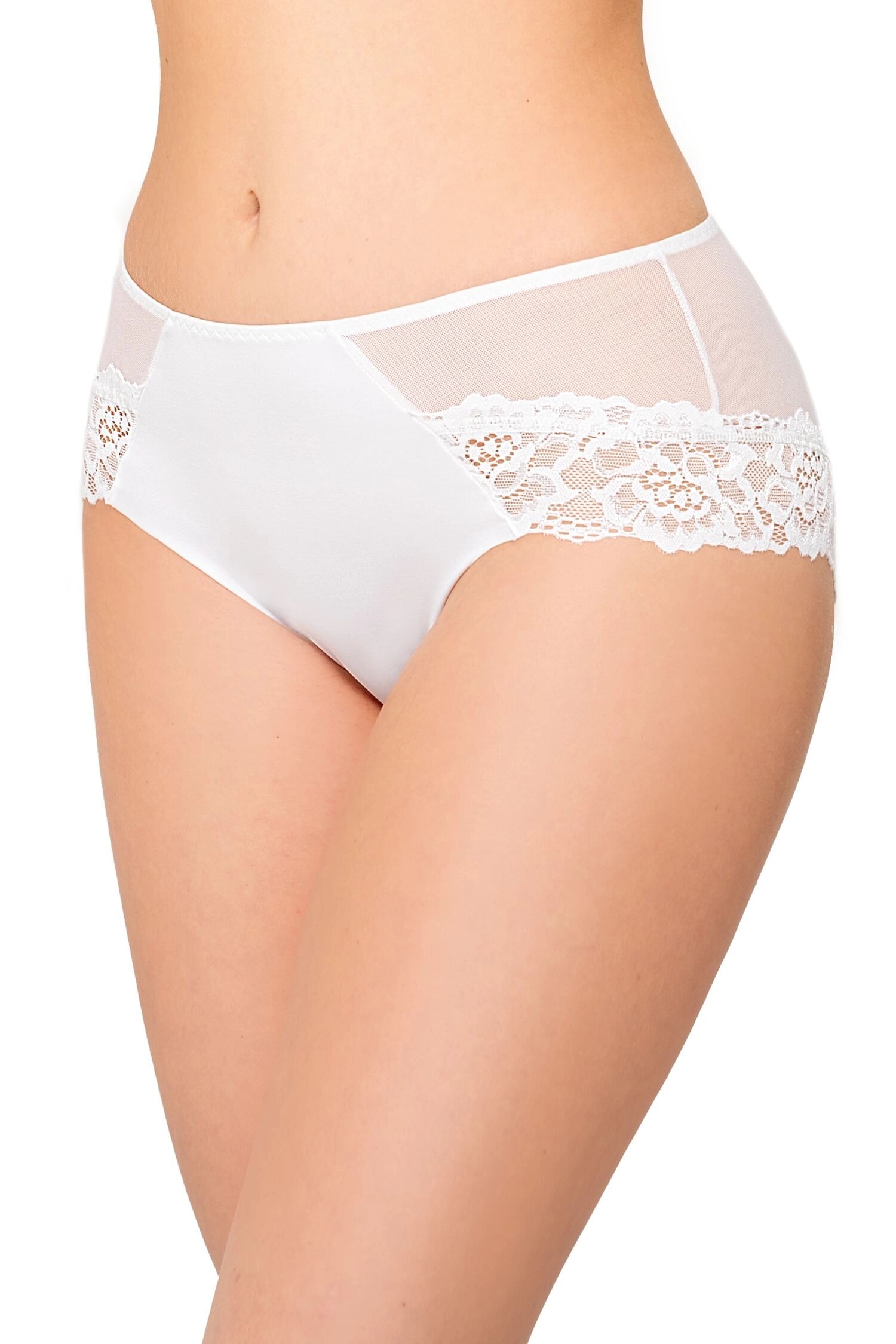 Dámské kalhotky jsou vyrobené z hladkého mikrovlákna a krajky – zadní část je ze siťoviny.