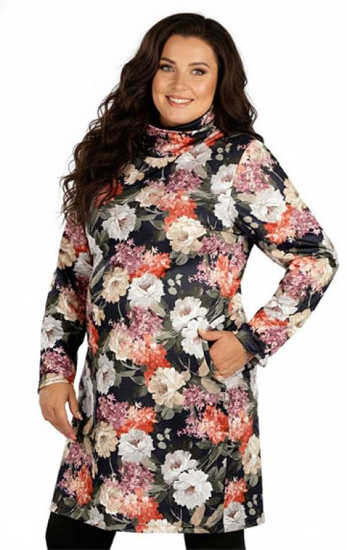 údržba je velmi snadná. Pružný materiál v krásném květinovém tisku s příjemným vnitřním počesem. Tyto šaty nabízíme ve větších velikostech. Délka šatů cca 100 cm.