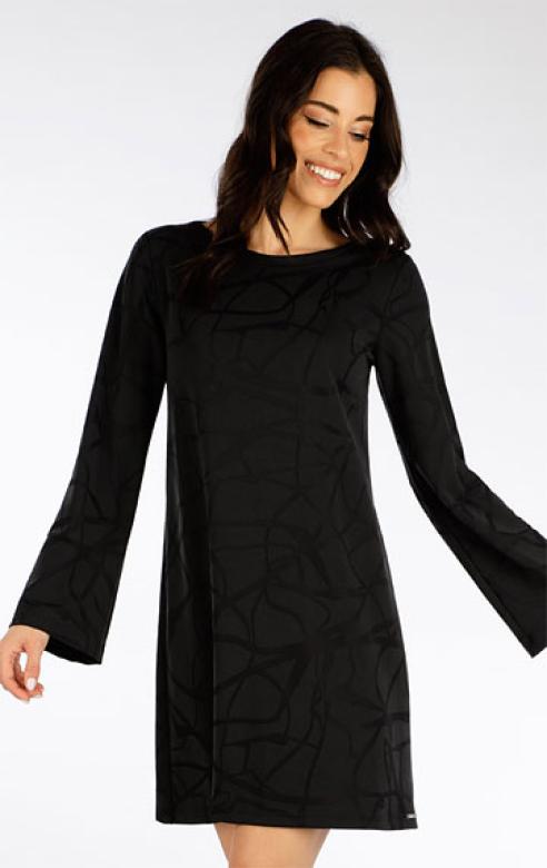 Pružný modalový materiál s plastickými ornamenty v černé barvě se nemačká a působí luxusním dojmem.