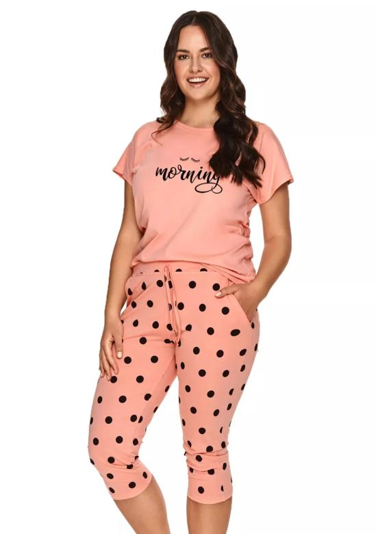 dámské nadměrné pyžamo Rada 2695/1 TARO představuje pohodlný domácí oděv vhodný pro ženy hledající kombinaci stylu a komfortu. Capri kalhoty jsou ozdobeny výrazným puntíkovým vzorem, mají praktické kapsy a stahovací šňůrku v pase pro optimální přizpůsobení.