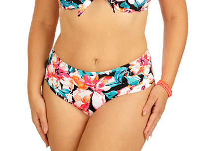 Pohodlné plavkové kalhotky mají extra vysoký střih. Kalhotky jsou v zajímavém barevném vzoru.