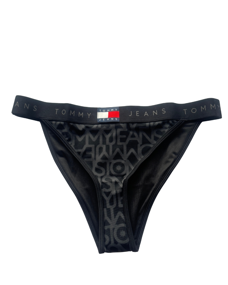 Plavkové kalhotky v efektní černé barvě  s potiskem v tónu mají v pase příjemnou gumu s nápisy značky Tommy Jeans.