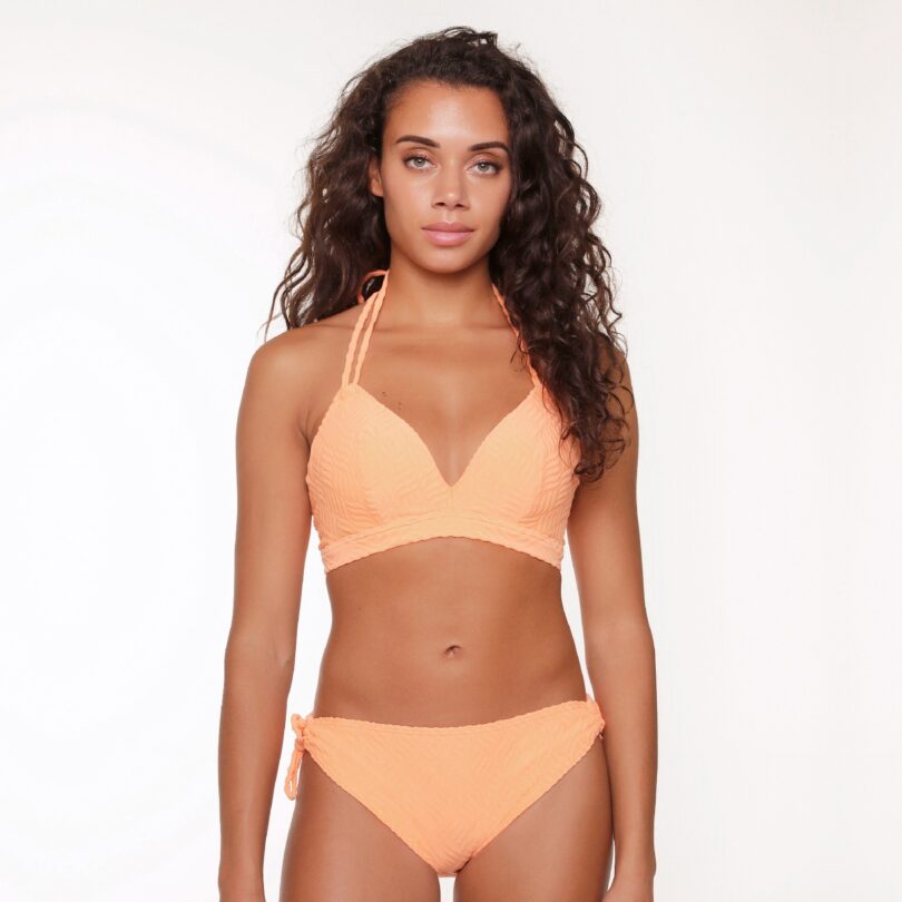 Dámské plavky se nabízí v krásné oranžové meruňkové barvě.