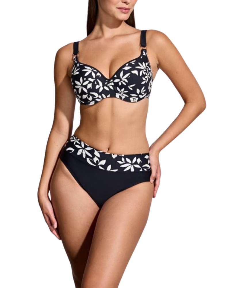 Plavky v černo-bílé kombinaci mají košíčky s šitou tvarovanou podprsenkou.