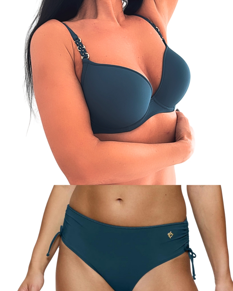 Plavková podprsenka s hladkými košíčky v modré barvě a push-up výztuží.