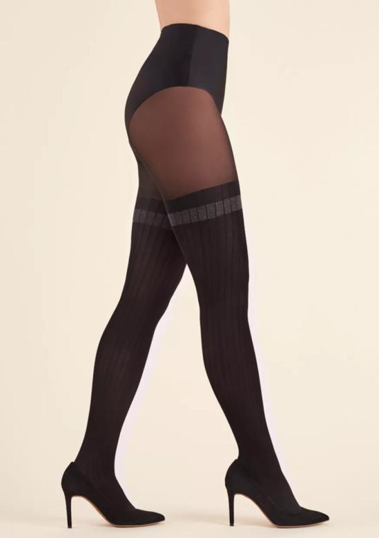 dámské punčocháče Scala 272 GABRIELLA jsou elegantní kombinací pohodlí a stylu pro chladnější počasí. Tyto teplé punčochové kalhoty imitují vzorované nadkolenky s jemným vzorem svislých pruhů a melanžovým vodorovným pásem, který dodává moderní vzhled. Díky absenci oddělené kalhotkové části a bavlněnému klínku nabízí vysoký komfort nošení po celý den. Výztuha na prstech je neviditelná, což zajišťuje hladký a nenápadný vzhled.