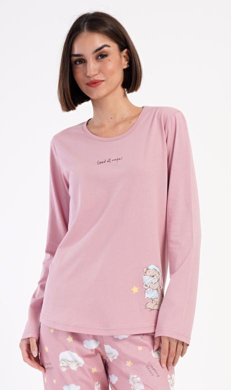 Veselé a kvalitní bavlněné dámské dlouhé pyžamo Méďa s polštářem.