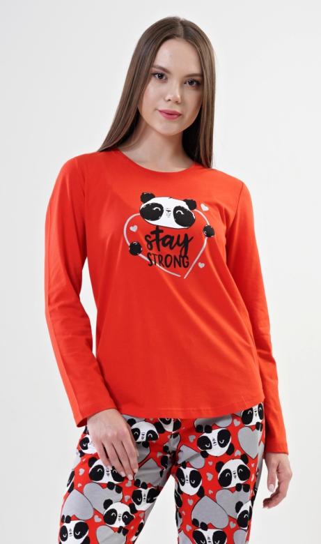 Hezké bavlněné dámské pyžamo Vienetta Secret s veselým motivem pandy.