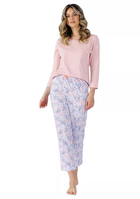 Dámské pyžamo Fidelia 1510 LEVEZA představuje pohodlný a stylový kousek pro každou ženu. Jeho kulatý výstřih a druhý rukáv zajišťují komfort během spánku i odpočinku. Horní část je doplněna malou kapsou na prsou, kterou ozvláštňuje decentní mašlička. Spodní část pyžama tvoří dlouhé kalhoty se vzorem bez kapes, s širokou gumou v pase pro optimální pohodlí.Vyrobeno z kvalitního příjemného bavlněného úpletu, tento model je přírodní, prodyšný a šetrný k pokožce.Složení: 100% bavlna zaručuje měkkost a dlouhou…