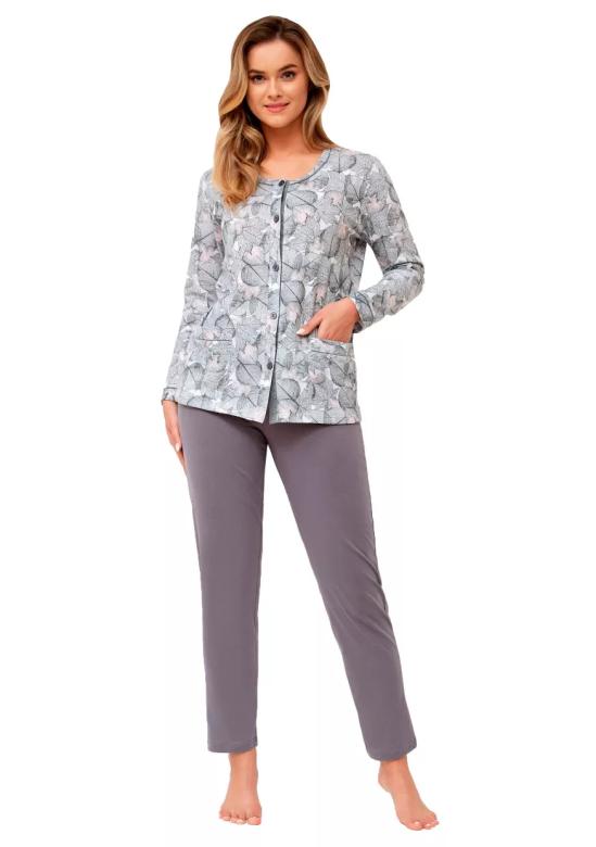 dámské pyžamo Genesis 1260 LEVEZA představuje ideální kombinaci pohodlí a stylu pro všechny, kdo hledají kvalitní noční oděv. Horní část je vytvořená jako propínací kabátek se vzorem listů, který zaujme svou něžnou a přirozenou grafikou. Kabátek je doplněný o dvě praktické kapsy na bocích, což zvyšuje jeho funkčnost. kalhoty jsou jednobarevné, bez kapes a mají volnou gumu v pase, která zaručuje příjemné nošení bez jakéhokoliv stahování nebo nepohodlí. Celý set je ušitý z měkké a kvalitní bavlny, která po…