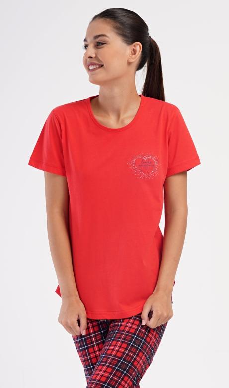 Pyžamo má triko s krátkým rukávem v červené barvě s motivem srdíčka.