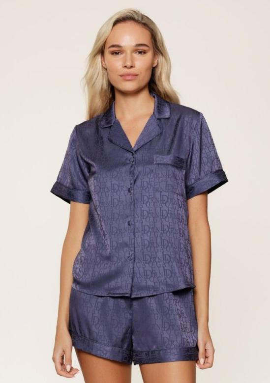 Dámská luxusní pyžamová sada složená z krátkých kalhot a halenky s krátkým rukávem, vyrobená z jemného saténového materiálu, který působí hedvábně na dotek a zajišťuje pohodlí při nošení. Halenka má zapínání na knoflíky po celé délce a na přední straně náprsní kapsičku. kalhoty disponují elastickým pasem pro pohodlné nošení a rovnými nohavicemi pro elegantní vzhled. Po celé ploše pyžama je tištěné logo „LD“ v tónu barvy pyžama. Materiálové složení: 100% polyester