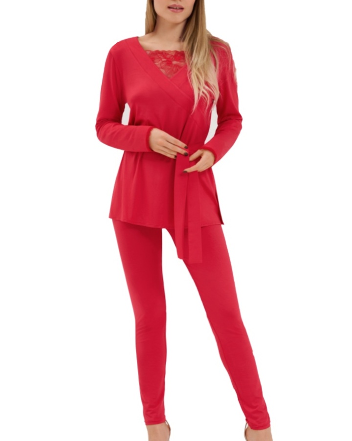 Pyžamové triko je v prodloužené délce, doplněno o páske na zavazování. U výstřihu je luxusní krajková vsadka.