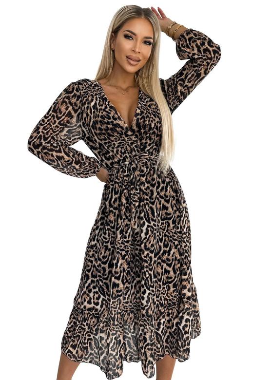 Šifónové dlouhé šaty jsou s leopardím vzorem.