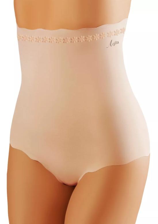dámské stahující kalhotky Agilla EMILI vynikají zvýšeným pasem, který je zdoben jemnými silikonovými kytičkami, jež zabraňují nepříjemnému srolování během nošení. Díky preciznímu laserovému řezu je okraj kalhotek dokonale hladký a netřepí se, proto není potřeba dalšího začištění švem. Tento model je diskrétní pod oblečením a zajišťuje hladký vzhled bez viditelných linek.Vnitřní část rozkroku je podšitá příjemnou bavlněnou látkou, která zvyšuje komfort při nošení. Materiálové složení představuje 80 % bavl…