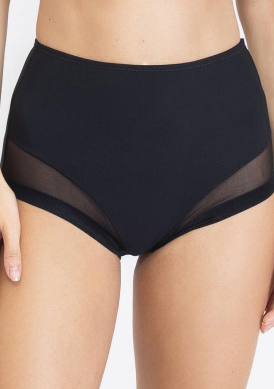 Vyšší kalhotky klasického střihu jsou v přední části kombinované jemnou krajkou.