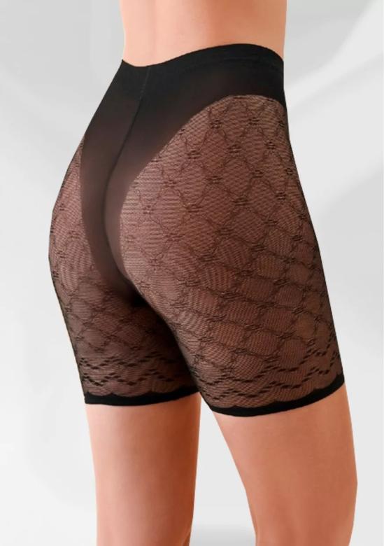 Dámské stahovací šortky Elegant 988 GABRIELLA nabízejí kombinaci funkčnosti a elegance díky svému krajkovému vzoru. Prodloužené nohavičky šortek účinně zabraňují tření stehen a přispívají k optickému zeštíhlení postavy, zároveň chrání citlivou vnitřní část stehen před oděrem. Vysoký pas je doplněn širokou a pohodlnou gumou, která šortky pevně drží na místě, aniž by se zařezávala nebo mačkala kůži. Materiálové složení je pečlivě zvoleno tak, aby zajistilo příjemné nošení a dlouhou elasticitu — 85 % polyam…