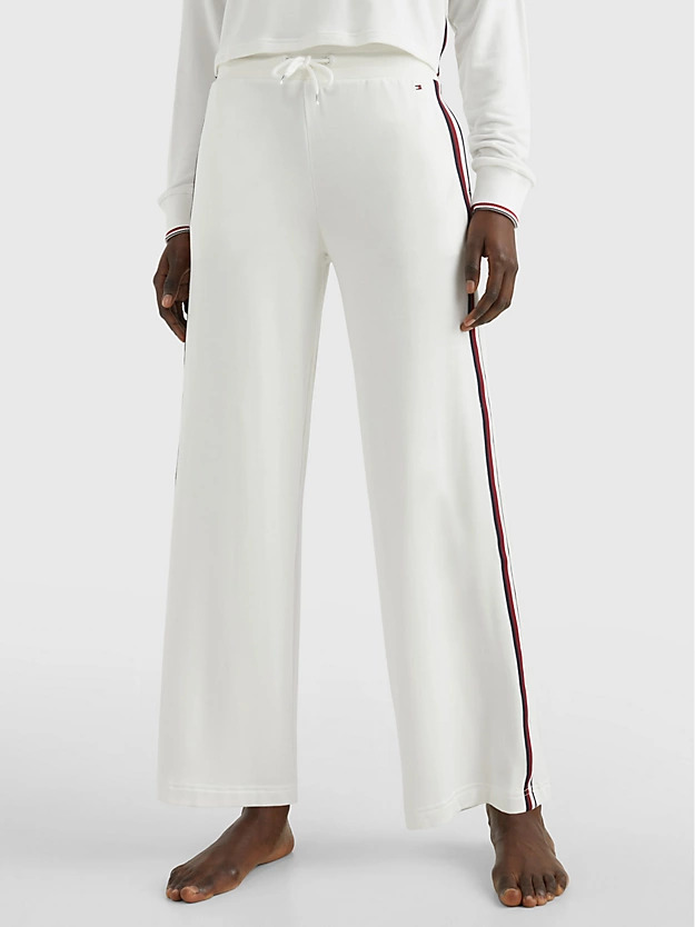 Dámské teplákové kalhoty Tommy Hilfiger mají po boku tříbarevnou pruhovanou gumu, která tvoří pásek po celé délce.