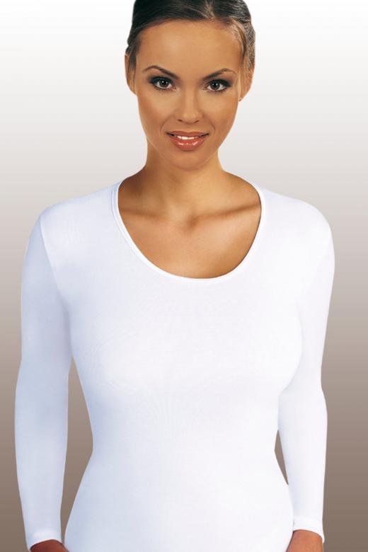 Dámské tričko má kulatý výstřih a dlouhý rukáv.