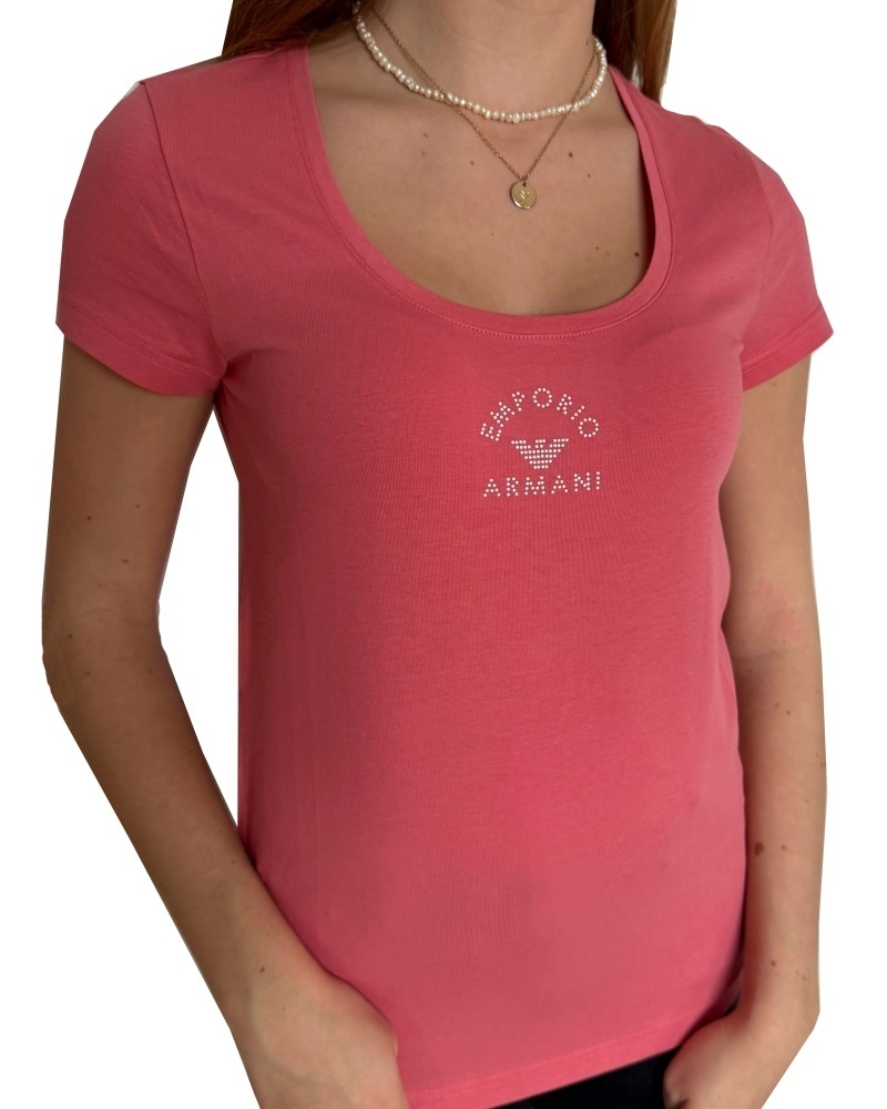 Luxusní dámské tričko prestižního výrobce Emporio Armani v korálové barvě.