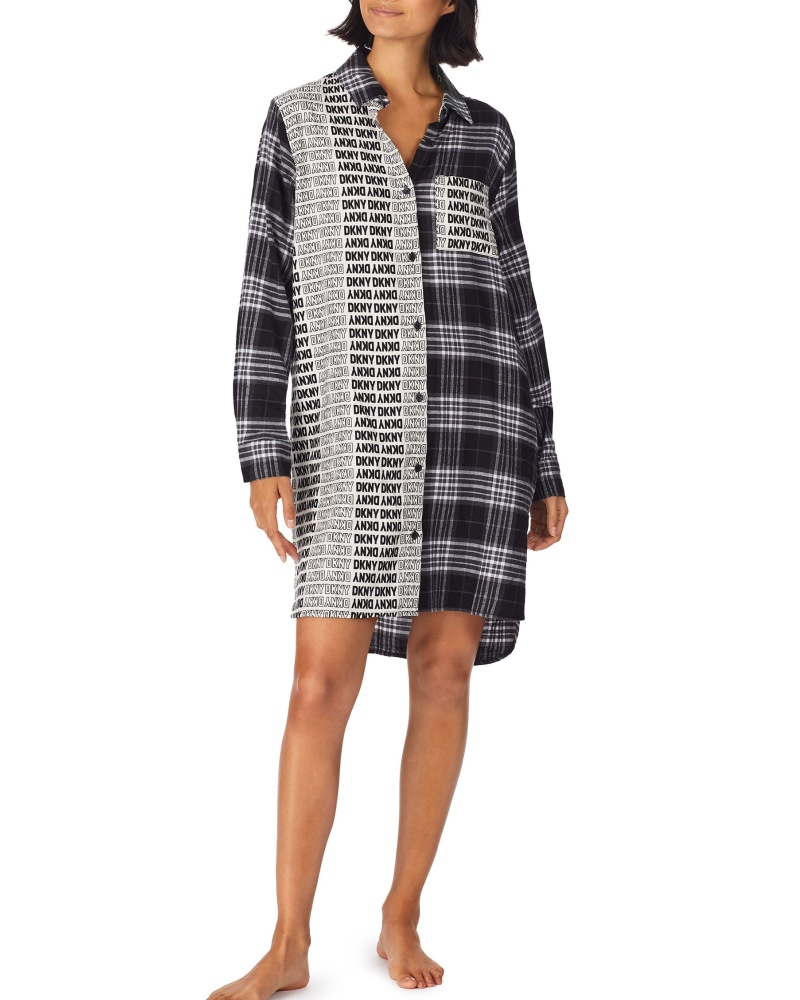 Šaty DKNY se nabízí v černé barvě v celopotisku.